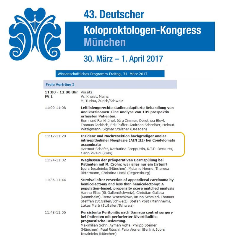 Vortrag: Diagnostik und Prävention des Analcarcinoms
