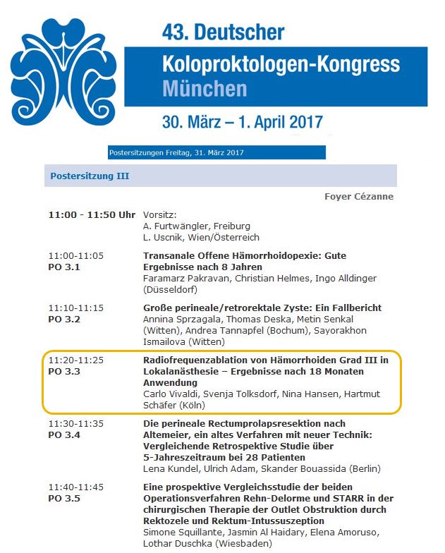 Es liegen nun Langzeitergebnisse zur Radiofrequenzablation von Hämorrhoiden vor. Es ist uns gelungen die gewonnenen Daten aus der Nachbeobachtung vieler unser Patienten hochrangig zu publizieren. Diese Publikation wird maßgeblich zur weiteren Verbreitung dieser ambulanten, schmerzarmen und effektiven Therapie beitragen. Allen Patienten, die bei der Studie mitgeholfen haben, sagen wir ein herzliches Dankeschön. Ihr Team von der Enddarmpraxis.