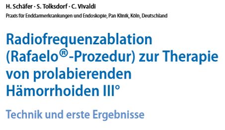 Die schonende Hämorrhoidenoperation (Rafaelo-Methode) wurde von dem Team der Enddarmpraxis wissenschaftlich begleitet und erfolgreich in dem Fachjournal „Coloproctology“ publiziert.
