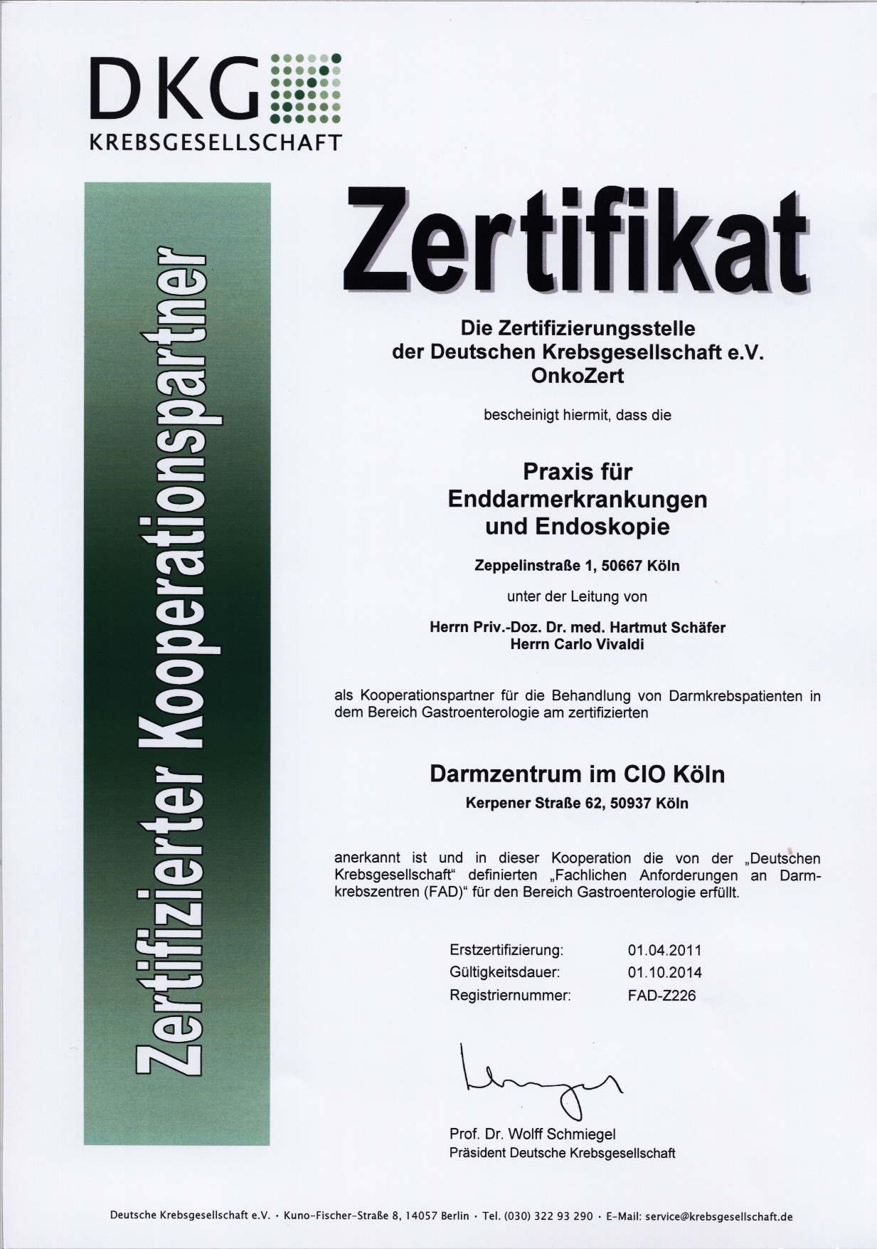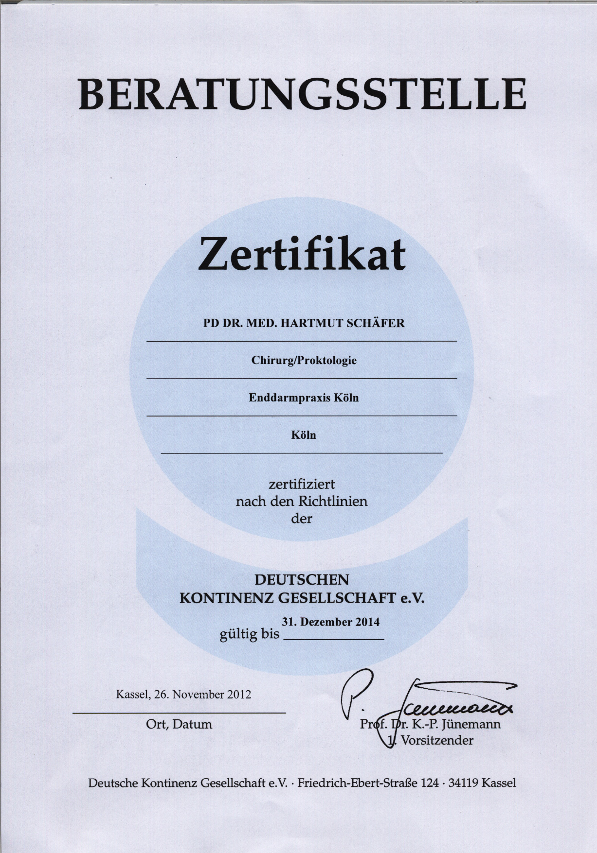 Bis zum 31.7.2012 war PD Dr. H. Schäfer Oberarzt und Leiter der Chirurgischen Endoskopie und Proktologie in der Klinik und Poliklinik für Allgemein-Viszeral – und Tumorchirurgie an der Universitätsklinik Köln. Er ist weiterhin als Dozent in der Lehre in der Uniklinik Köln tätig und nimmt Prüfungstätigkeiten im Abschlussexamen der Medizinstudenten der Universität zu Köln wahr.